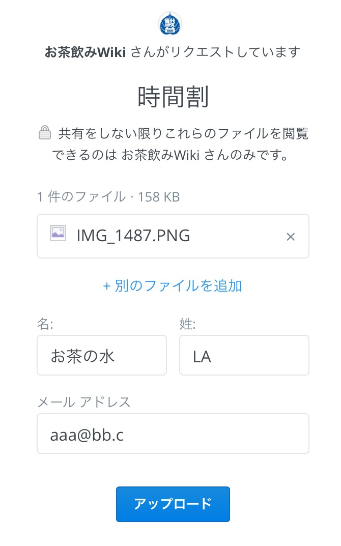 - 「ファイルを選択」というボタンをクリックし、自分の画像フォルダから撮影した時間割表の写真を選択して下さい。